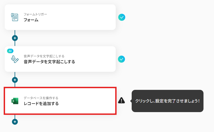それではここから代表的な例として、Yoomの入力フォームで音声データが送信された際に、そのファイルを自動で文字起こしし、結果をMicrosoft Excelに追加するフローを解説していきます!