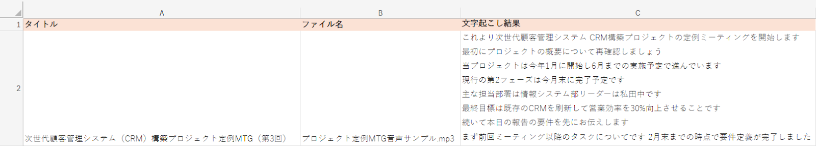 音声入力されたデータを自動で文字起こしし、Microsoft Excelに整理することで、データの活用や分析が容易になります。