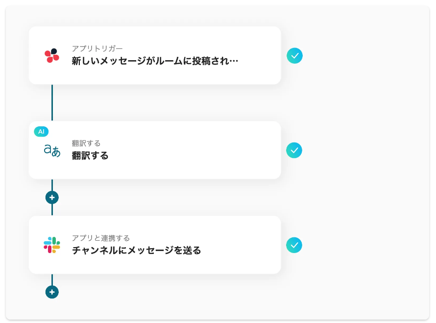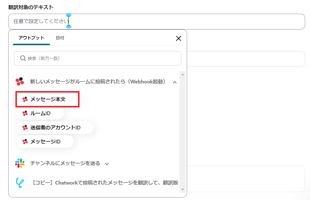 - Chatworkに投稿されたメッセージの翻訳版をSlackで自動共有したい方。