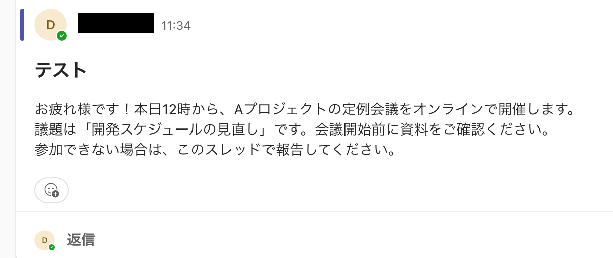 - Microsoft Teamsのメッセージが投稿されると、自動で翻訳されSlackに通知されるため、手作業による翻訳や転記の時間を削減できます。