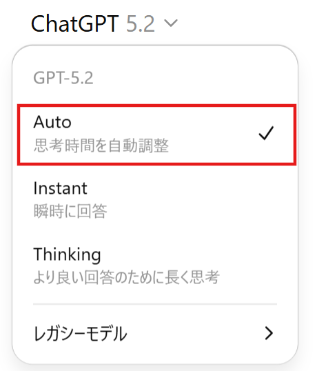 モデルはChatGPT5.2(Auto)にしています。