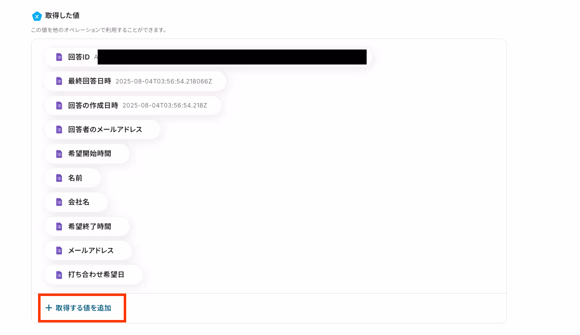 アウトプットを活用することで、フォームから回答を受け取る毎に異なる値を毎回読み取り、Backlogに反映することが可能です。