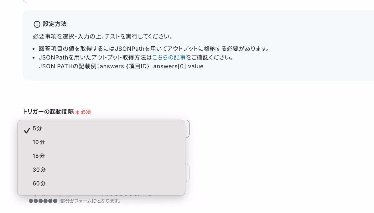 ・トリガーは5分、10分、15分、30分、60分の間隔で起動間隔を選択できます。