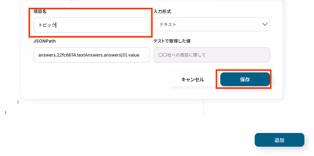 このステップで回答内容をアウトプットとして取得できます。取得したアウトプットを次の設定で活用することで、Backlogにここの情報をそのまま自動追加することが可能です。