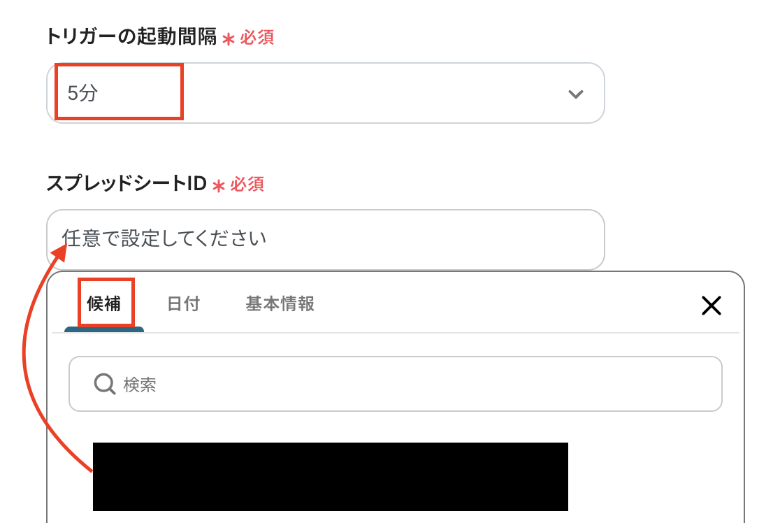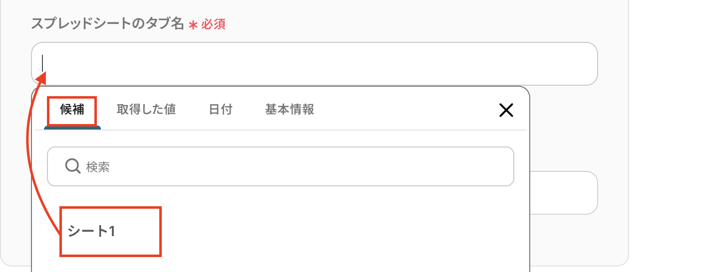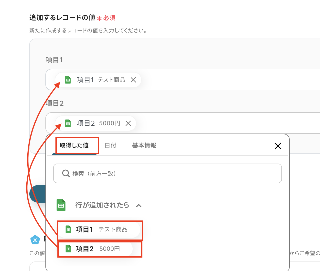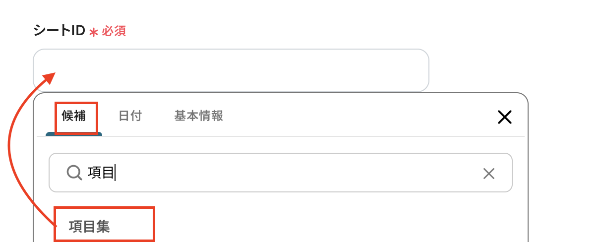 各項目ごとにGoogle スプレッドシートの取得した値から選択していきます。