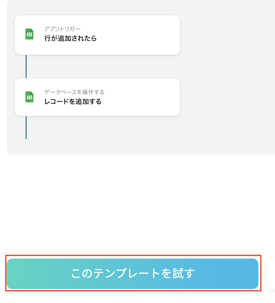 設定後、Google スプレットシートのデータベースに行を追加し、テストをクリックしましょう。