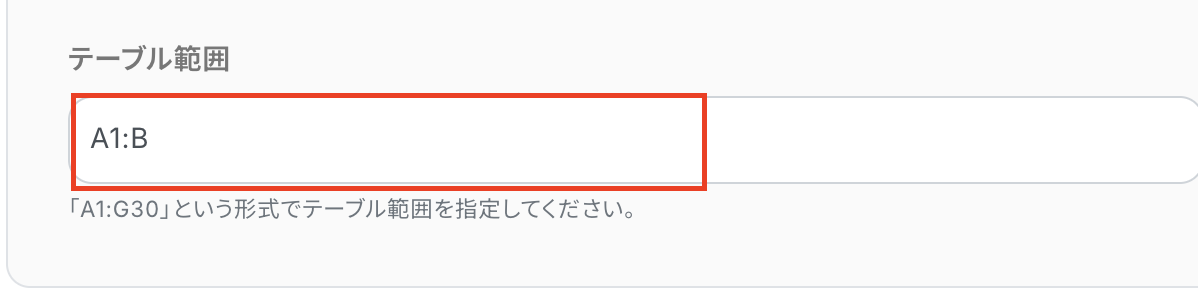 テーブルの範囲(始まり)、テーブルの範囲(終わり)、一意の値が入った列を設定しましょう。