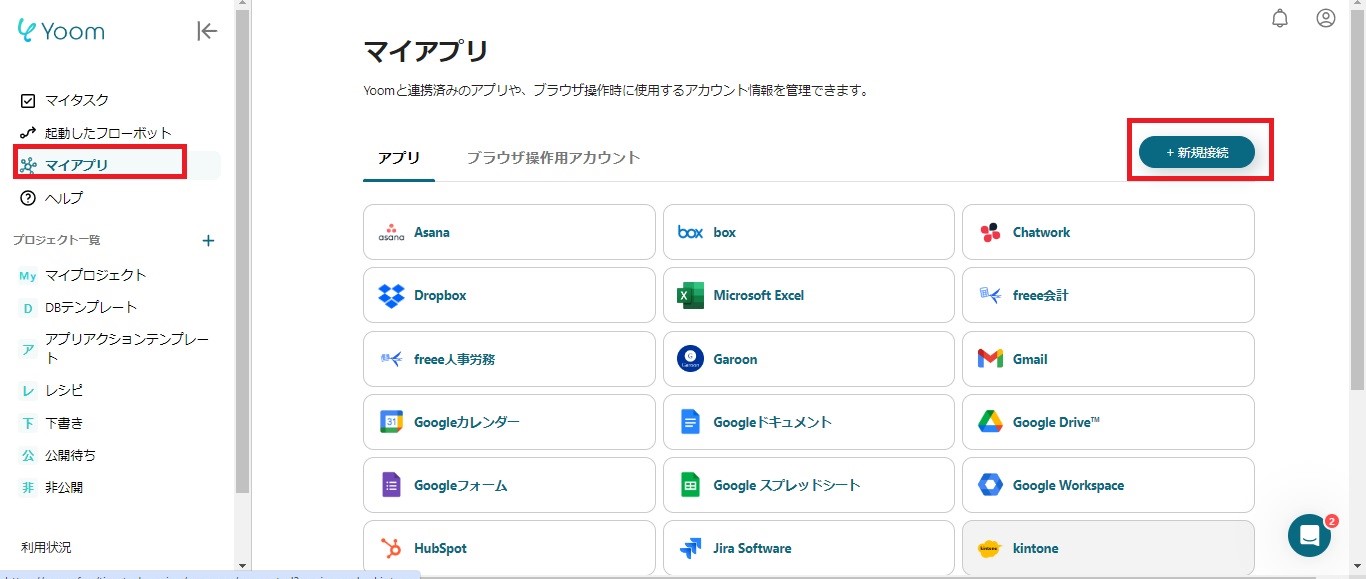 1.まずはYoomにログインし、左欄にある「マイアプリ」を選択します。