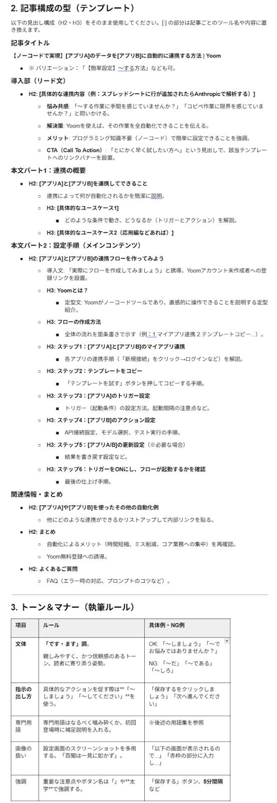 マニュアルを作成するためのプロンプトを入力して送信すれば、結果が自動で出力されます。