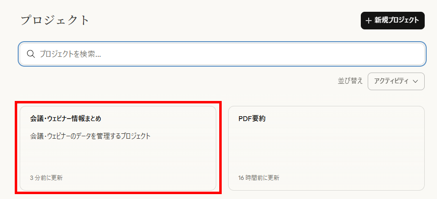 複数の資料を一つの場所にまとめ、それらを共通の前提知識として活用できるのがプロジェクト機能です。
