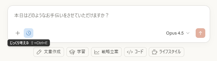 ※じっくり考える機能(拡張思考)を使うと、Claudeが回答を導くための複数のプロセスを検討できるようになるため、回答の精度向上に繋がります。