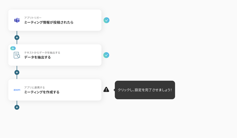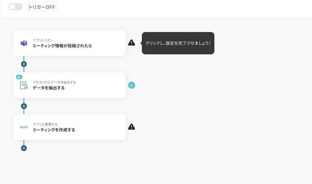 1つ目のステップの「ミーティング情報が投稿されたら」をクリックしてください。