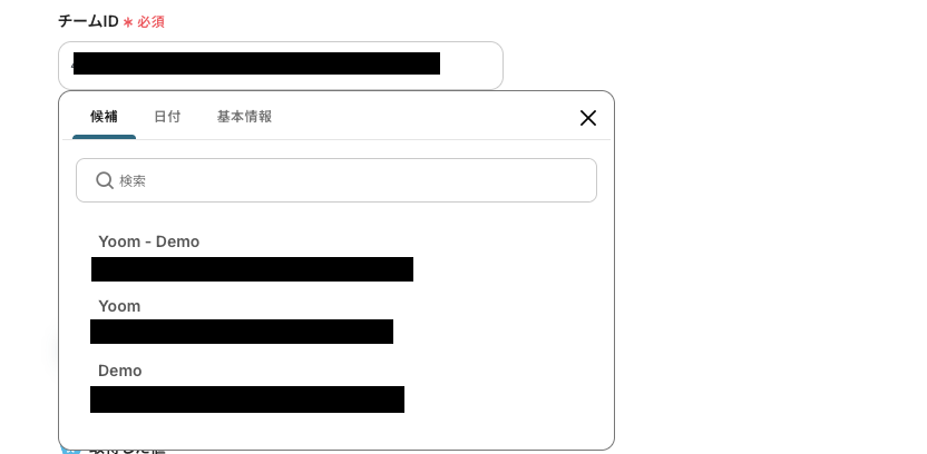 次の画面で「チームID」や「チャネルID」などの項目に情報を入力しましょう。