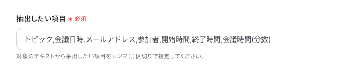「抽出したい項目」は今回以下のように設定してみました。皆さんも、運用状況に合わせたものを設定してくださいね。