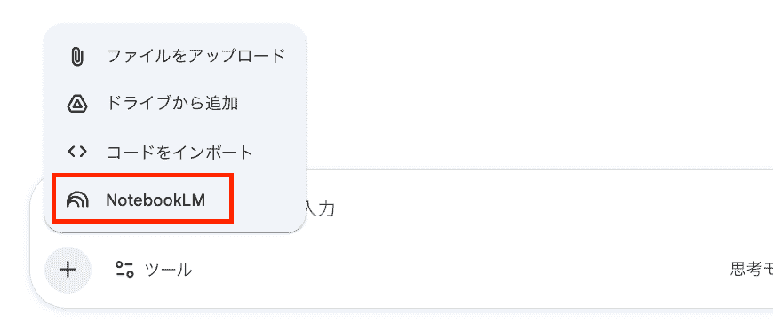 使い方は至ってシンプルで、チャットの+ボタンからNotebookLMを選択し、議事録データをアップロードします。
