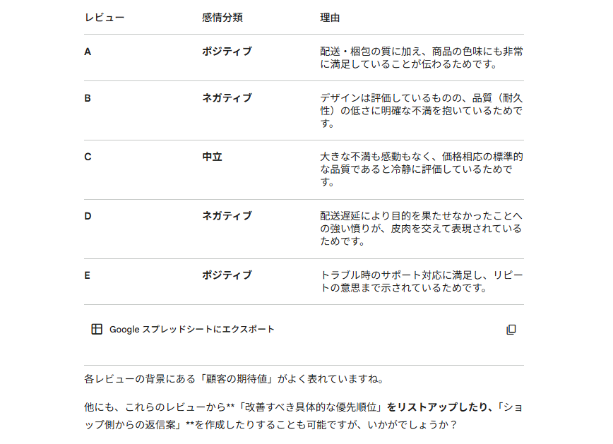 Geminiで感情分析した結果を、そこで終わりにしてしまうのはもったいないです。