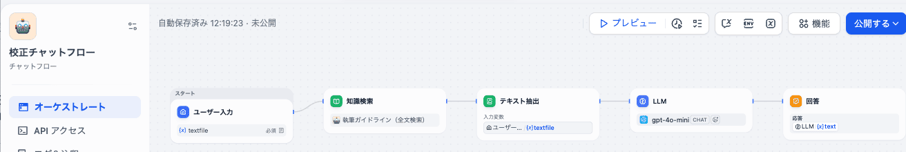 一方で、AIとやり取りをしながら内容を調整したい場合には、チャットフローが適しています。前の文脈を踏まえて修正できるため、細部にこだわりたいときや、人の感覚を反映させたいときに力を発揮します。