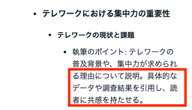 - 各見出しに対して「何を・なぜ書くのか」という執筆意図をライターが理解しやすいか
