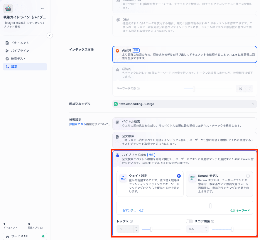 高品質インデックス(全文検索) vs 高品質インデックス(ハイブリッド検索)
