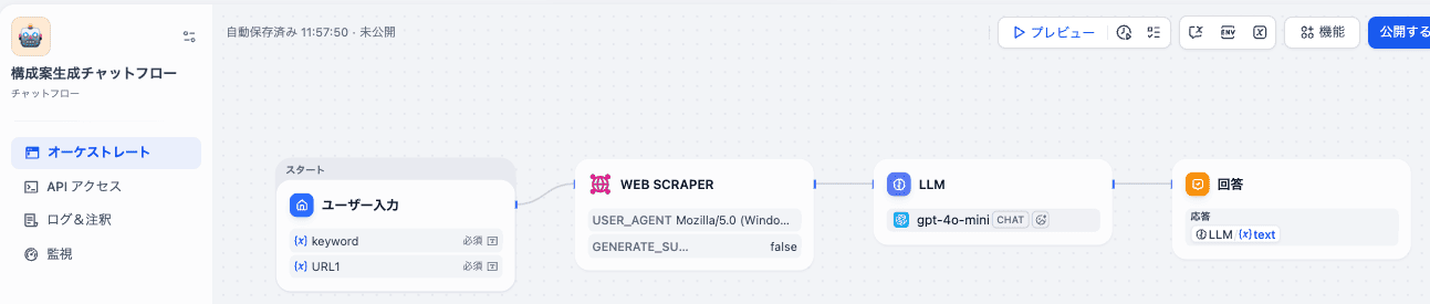 今回の検証から、構成案を短時間で量産したい場合はワークフロー、細かな調整を前提とする場合はチャットフローが適していることが分かりました。