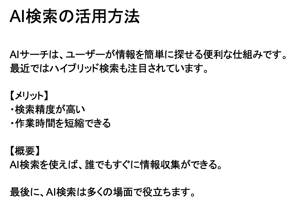 判定:全文検索 ◯ / ハイブリッド検索 ◯