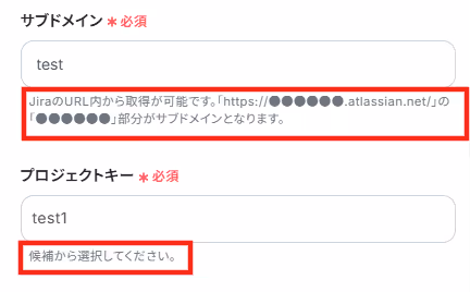 4.「サブドメイン」と「プロジェクトキー」は注釈を参考に入力しましょう。