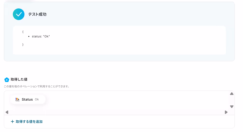 テストが成功したら、以下のように表示されます。