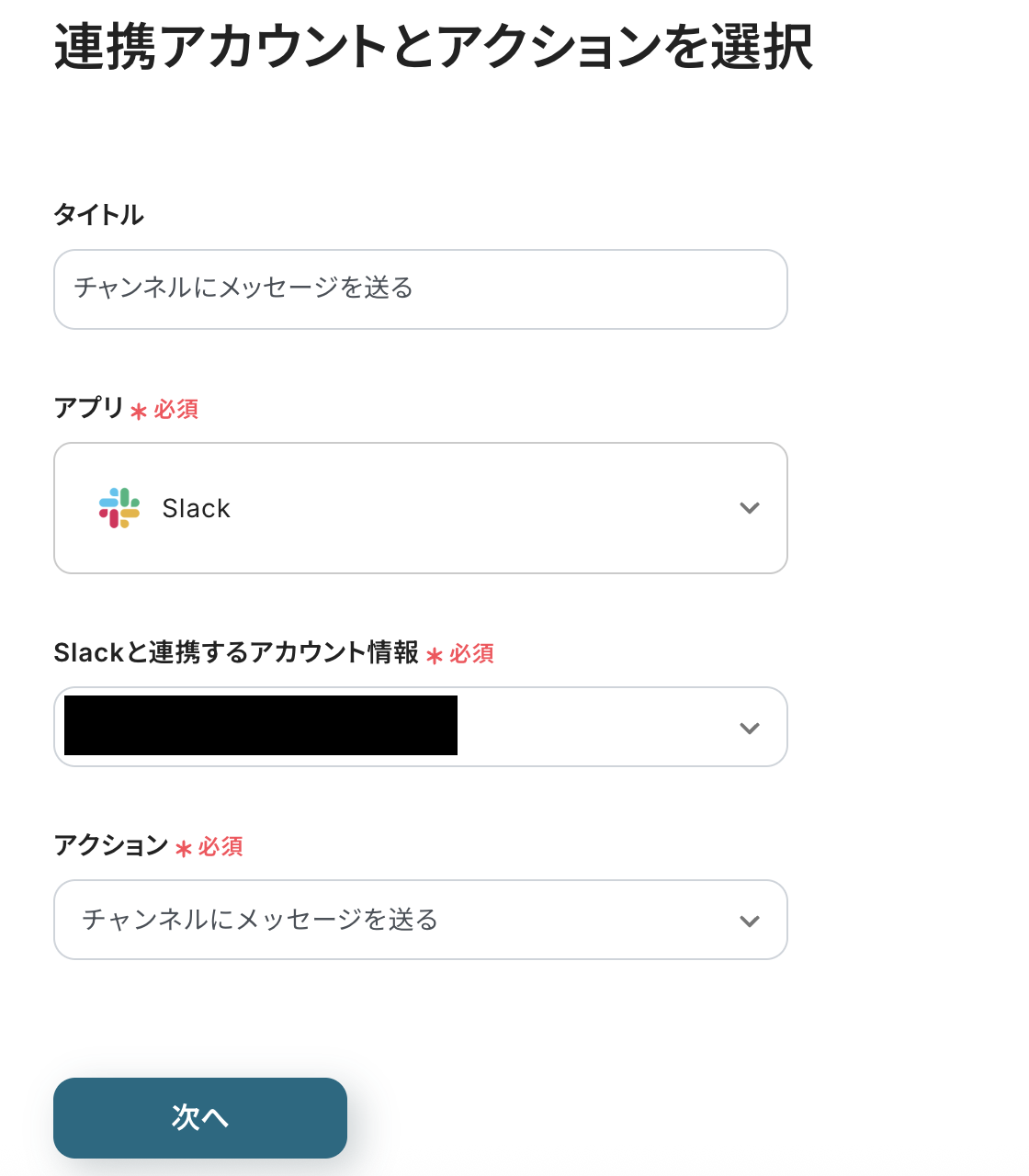 ステップ5:Slackのアクションを設定しよう(チャンネルにメッセージを送る)