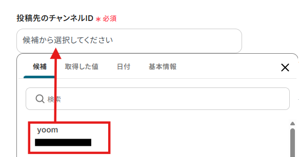 投稿先のチャンネルは以下のように表示される候補から選択しましょう。候補は連携したアカウントに基づいて表示されます。