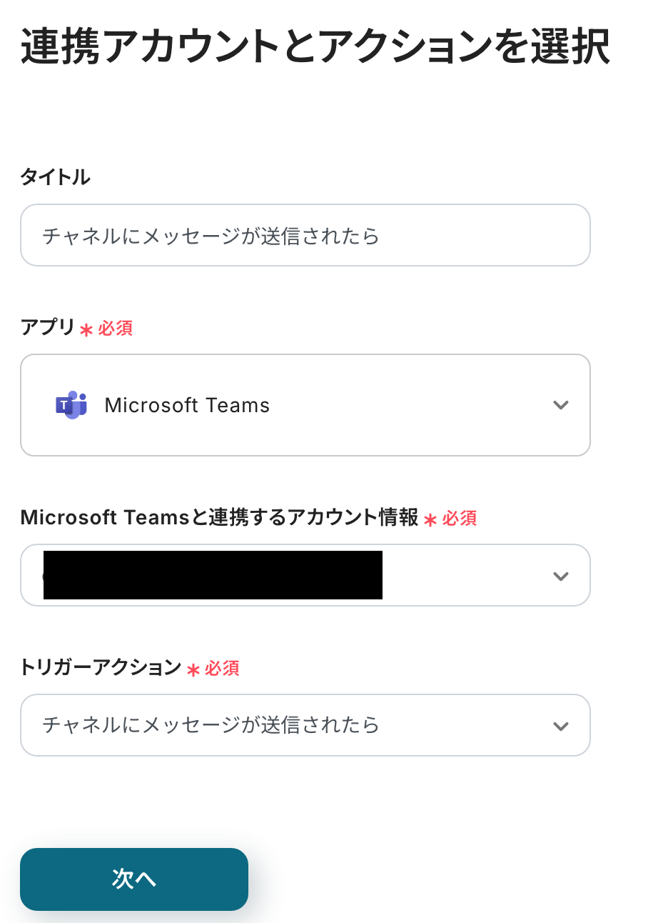 ステップ3:Microsoft Teamsのトリガー設定