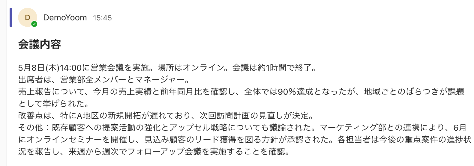 これにより、議事録作成の時間を大幅に短縮し、共有漏れや遅延を防ぎ、会議の決定事項を迅速に関係者へ伝えることができるようになる でしょう。