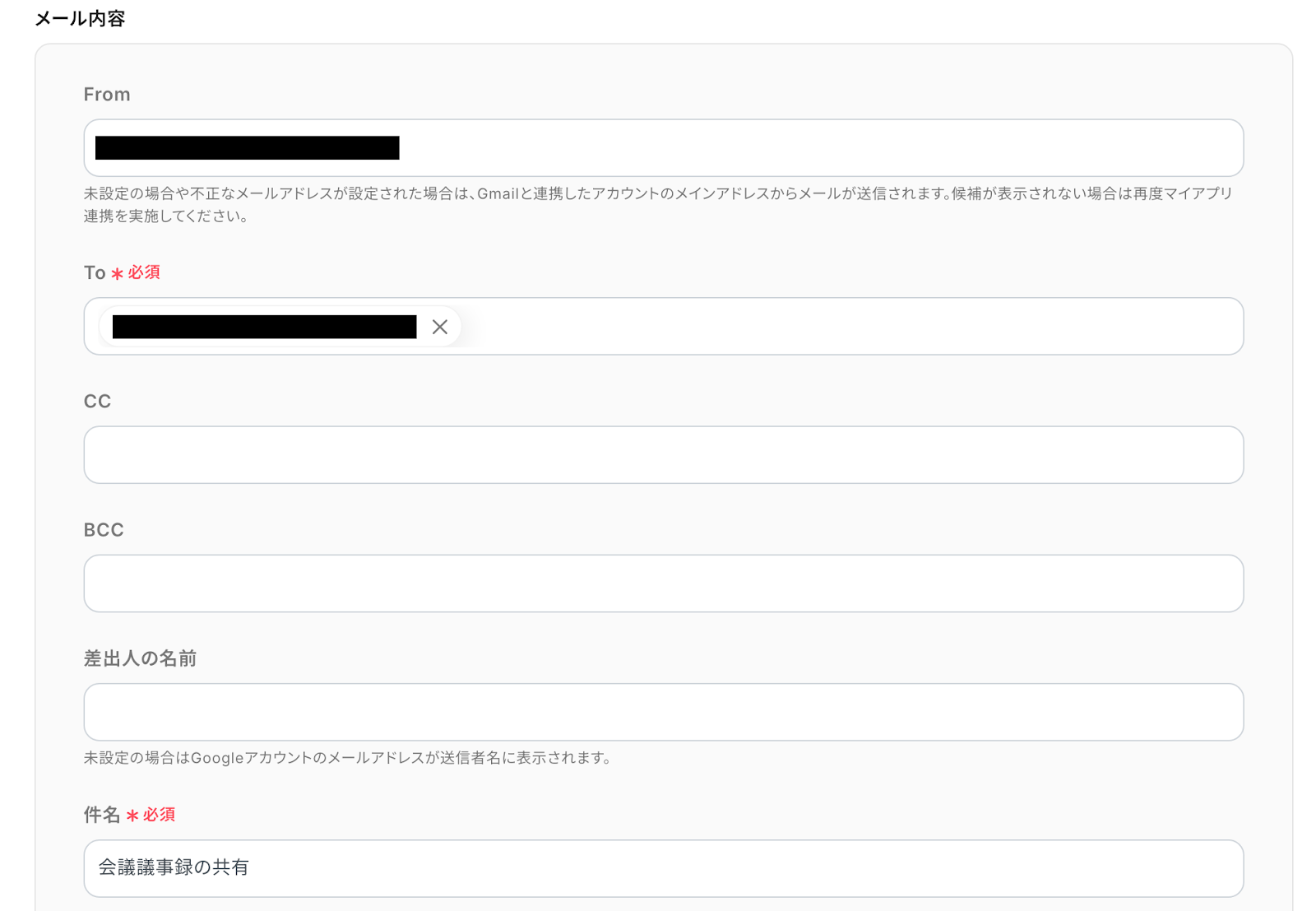CC/BCC :通知された情報を共有したいメールアドレスを設定