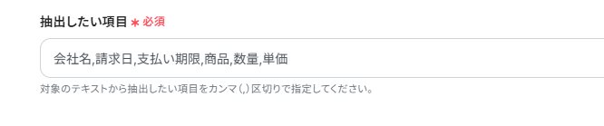 これにより、選択した雛形スプレッドシートの置換対象({}部分)が項目として表示されます。