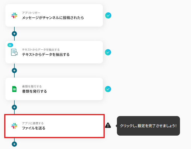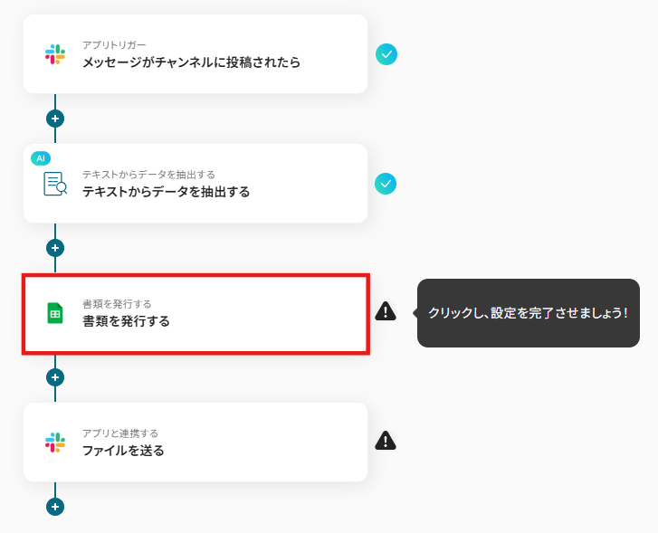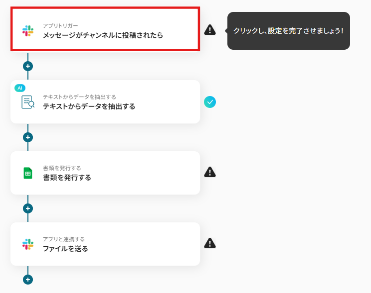 それではここから代表的な例として、Slackの特定のチャンネルへの投稿内容をもとに請求書を自動で作成し、指定の方法で送信する フローを解説していきます!