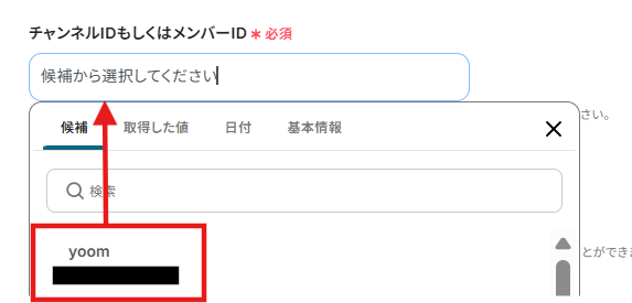「チャンネルIDもしくはメンバーID」を候補から入力しましょう!