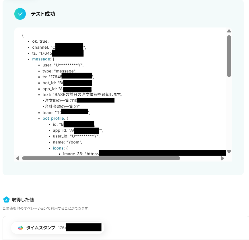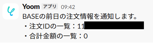 最後にSlackのチャンネルにBASEの注文情報のメッセージを送っていきます。