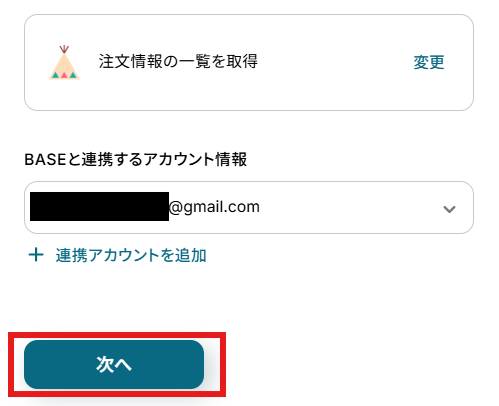 - 次に、トリガーでBASEを選択し、「注文が発生したら」というアクションを設定します。