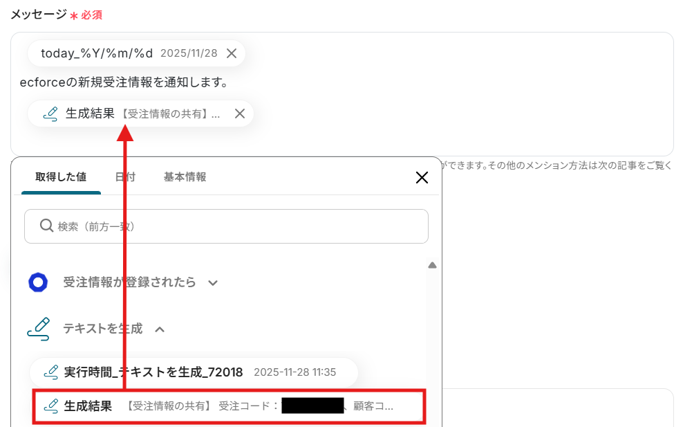 これにより、毎回変動する情報を手動で入力する必要がなくなり、効率的に連携できます!