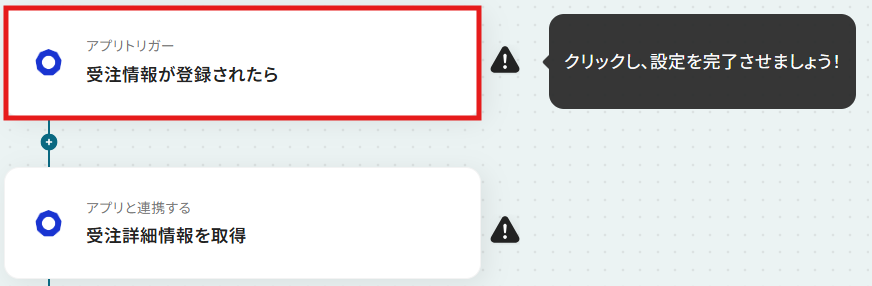 トリガーアクションは、「受注情報が登録されたら」のままで次に進みましょう!