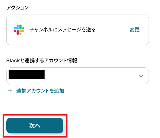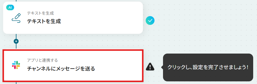 - 最後に、オペレーションでSlackの「チャンネルにメッセージを送る」アクションを設定し、AIが生成した要約を指定のチャンネルに通知します。
