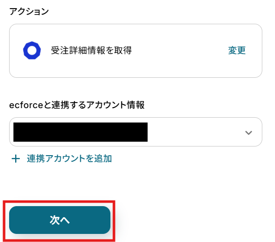 次に、ecforceに登録した受注の詳細情報を取得する設定を行います。