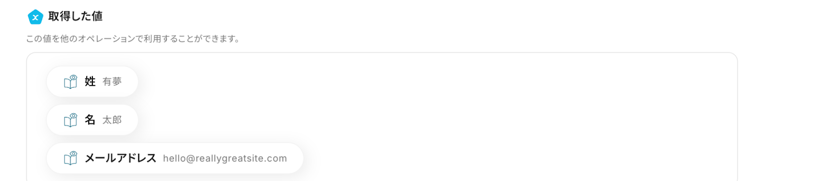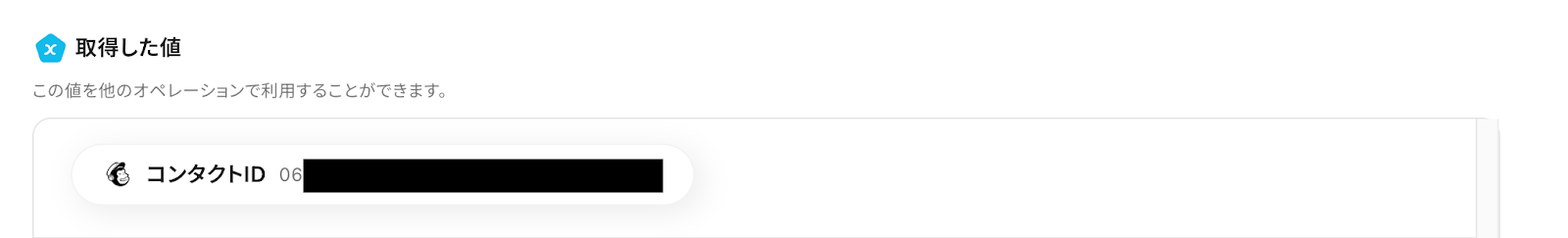 テストに成功すると「取得した値」としてコンタクトIDがアウトプットされます。