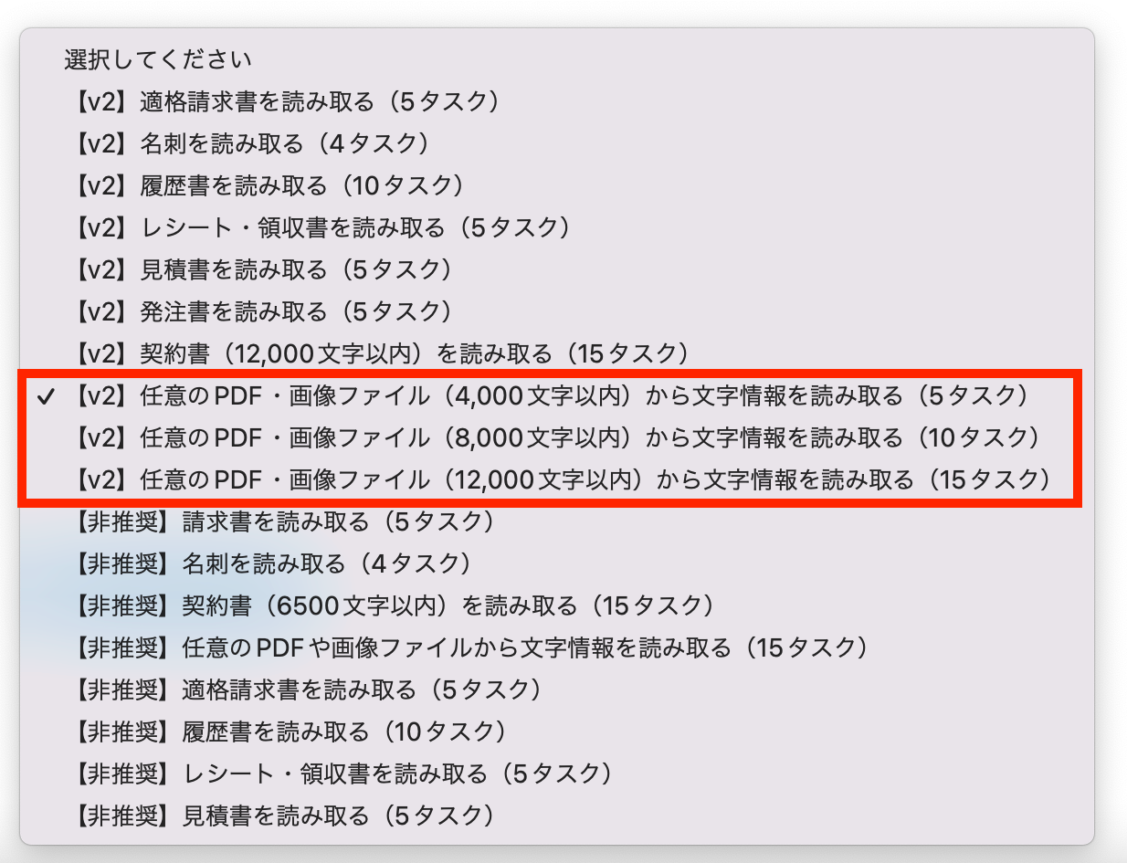・OCRのオペレーションはチームプラン・サクセスプランでのみご利用いただける機能となっております。フリープラン・ミニプランの場合は設定しているフローボットのオペレーションはエラーとなりますので、ご注意ください。