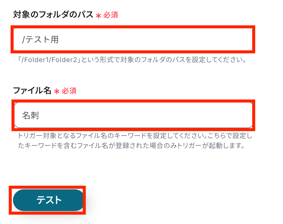 例えば「重要顧客」フォルダに追加されたファイルだけを処理する、といった柔軟な設定が可能です。