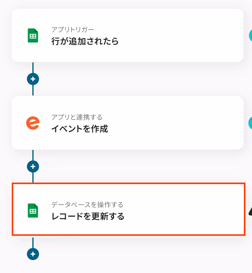 この自動化は、Google スプレッドシートのデータを直接Eventbriteに連携するシンプルな構成です。