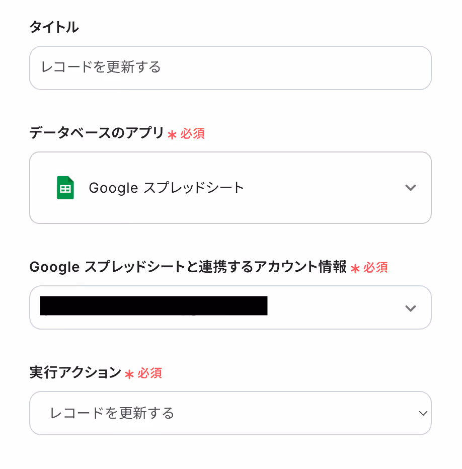 Google スプレッドシートと連携するアカウント情報も確認しましょう。