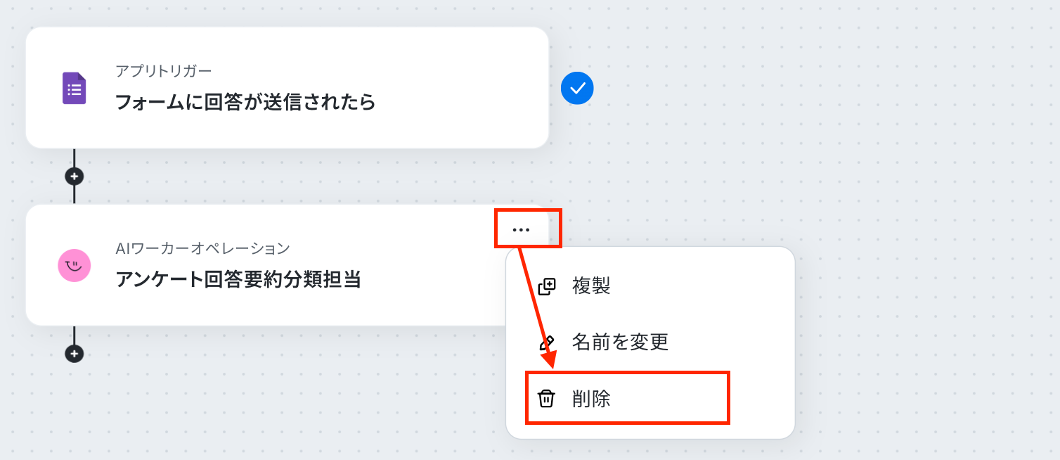 AIワーカーが完成したら、実際の業務フローとして動くように設定します。