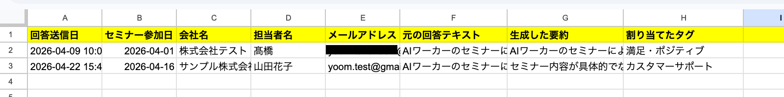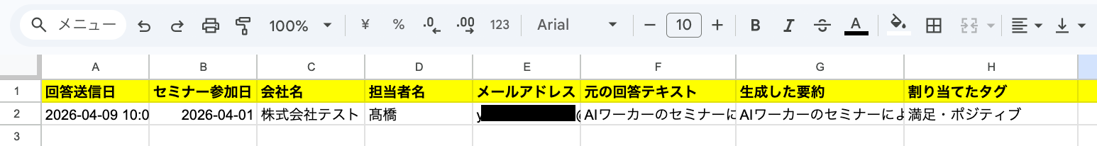 最後にGoogle スプレッドシートに登録されたか確認してみましょう!