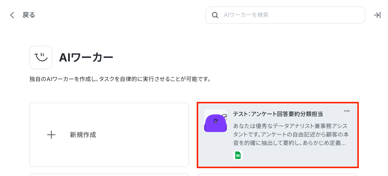 3.先ほど作成したAIワーカーをクリック。以上で、完了です!