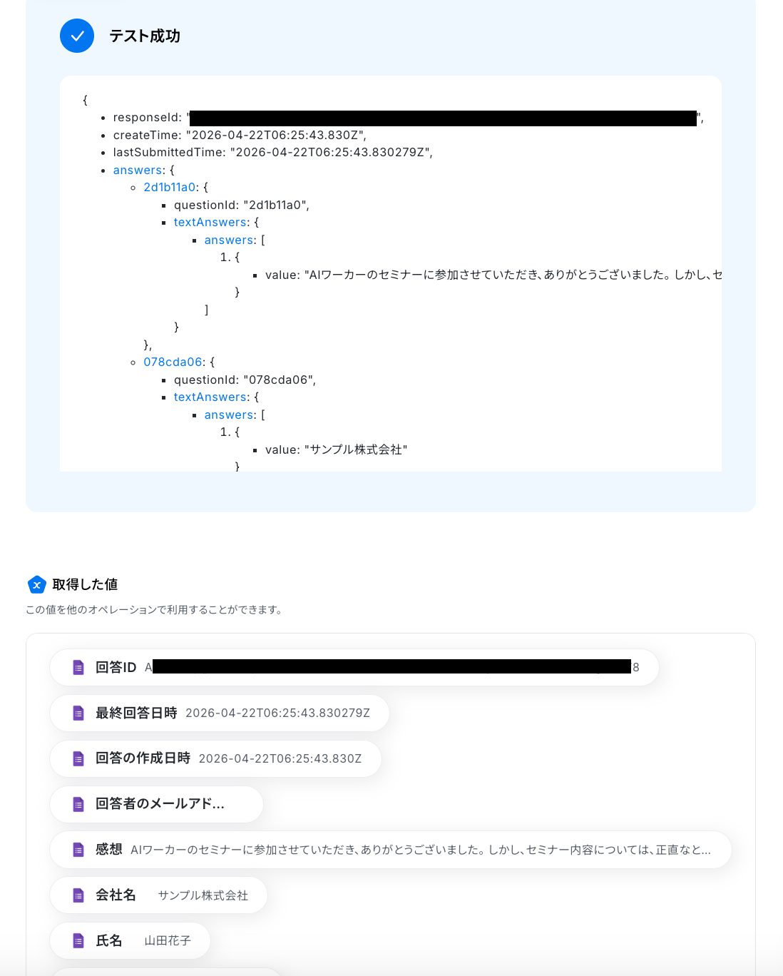 ※フォームの回答内容を取得できない場合は、以下のリンクを確認してください。